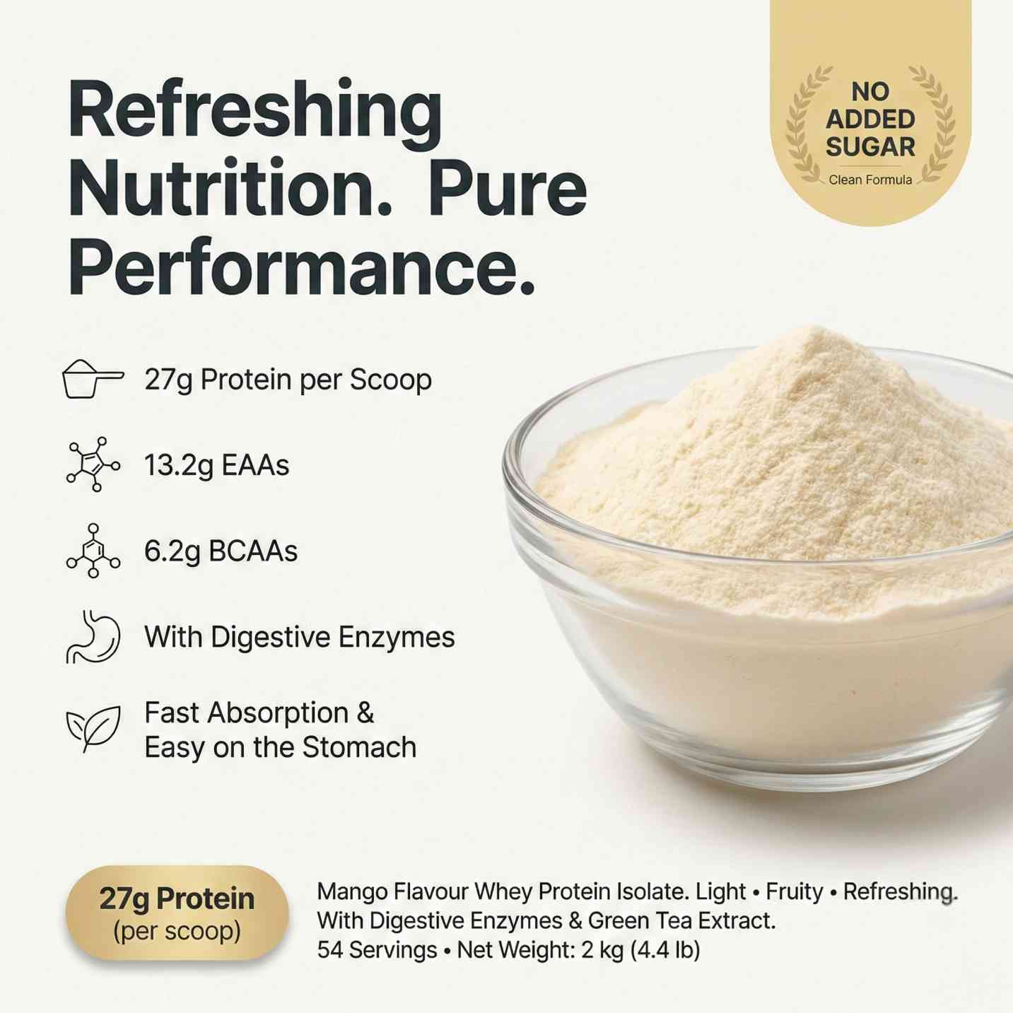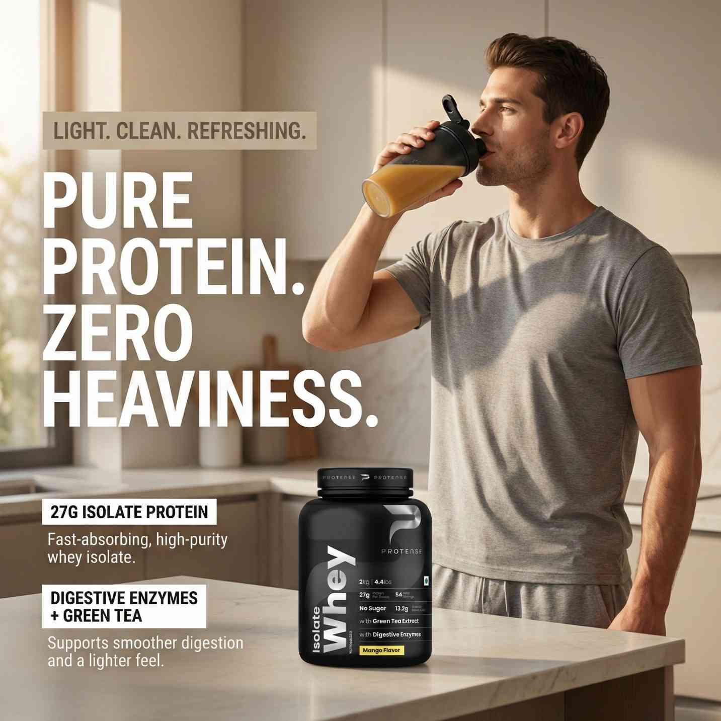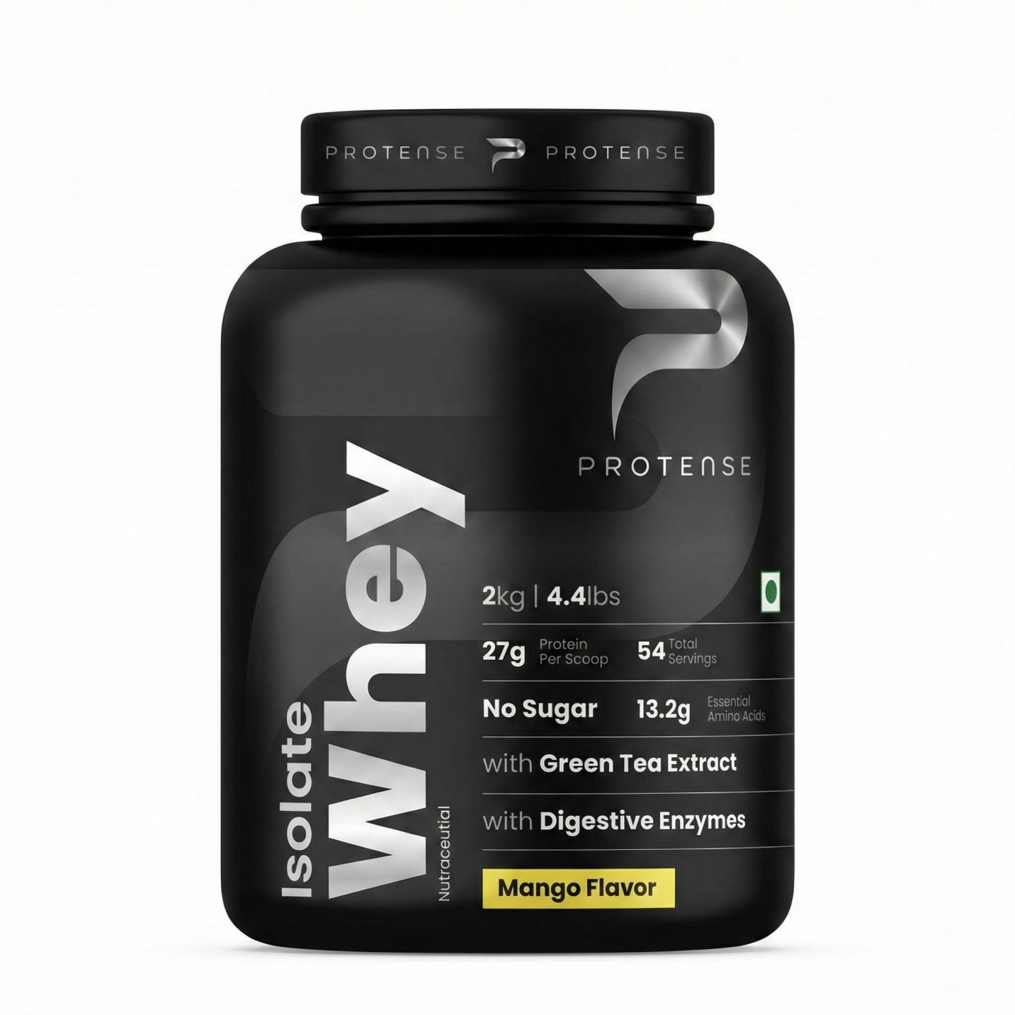 Mango - Refreshing and light, Protense Isolate Mango adds a fruity twist to serious nutrition. Each scoop provides 27g protein, 13.2g EAAs, and 6.2 g BCAAs, ensuring fast absorption and optimal recovery. With its smooth mango taste, it’s perfect for those who prefer a refreshing, non-heavy shake after workouts.