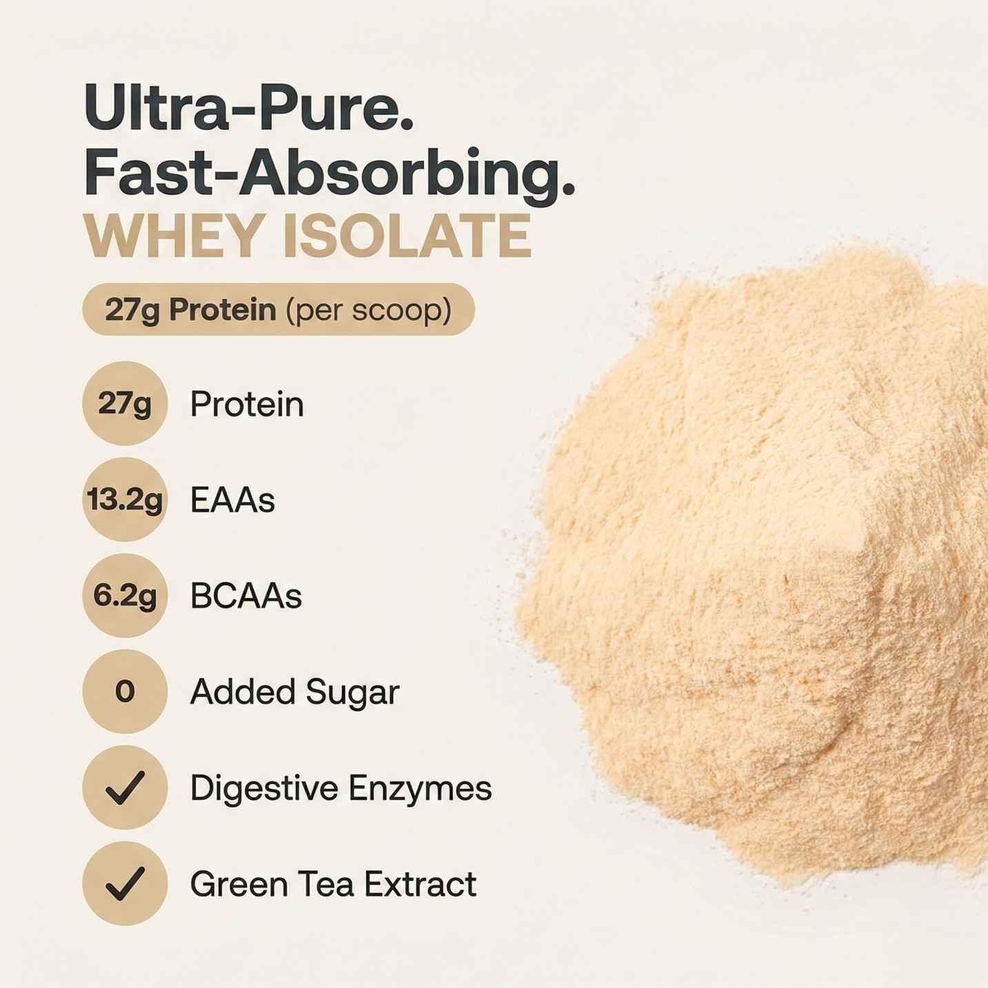 High protein concentration (per scoop ~27g)